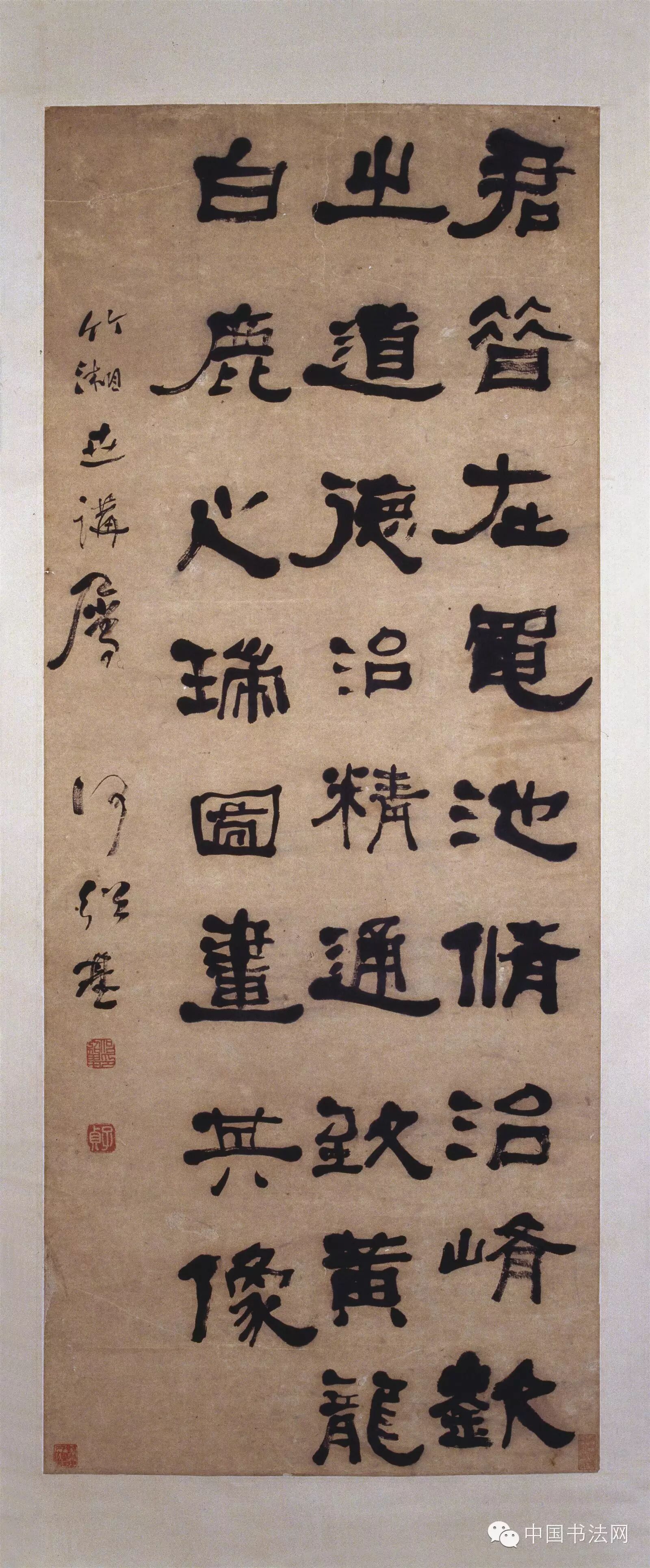 何绍基隶书黄庭坚《次韵王荆公题西太一宫壁二首其一》轴
