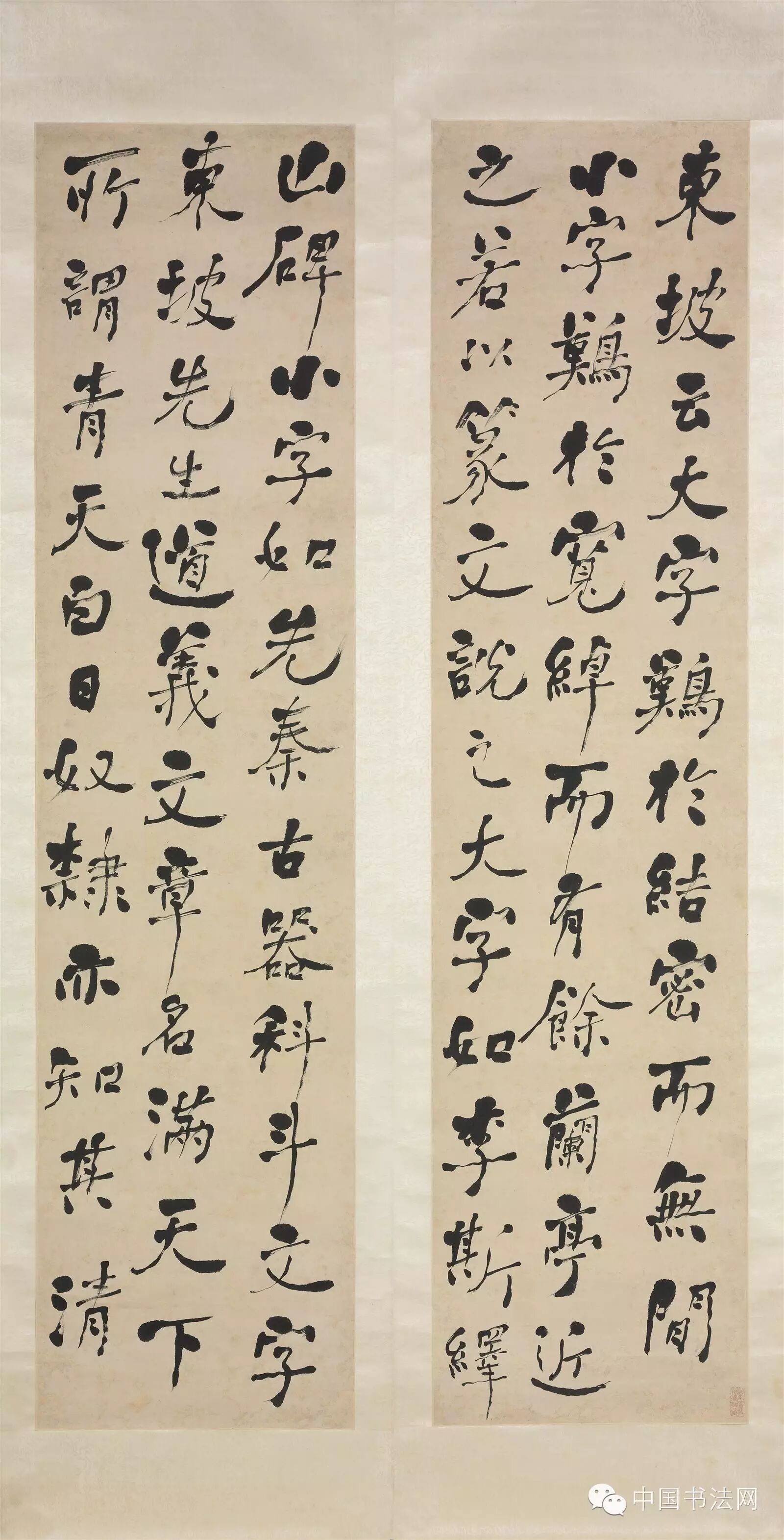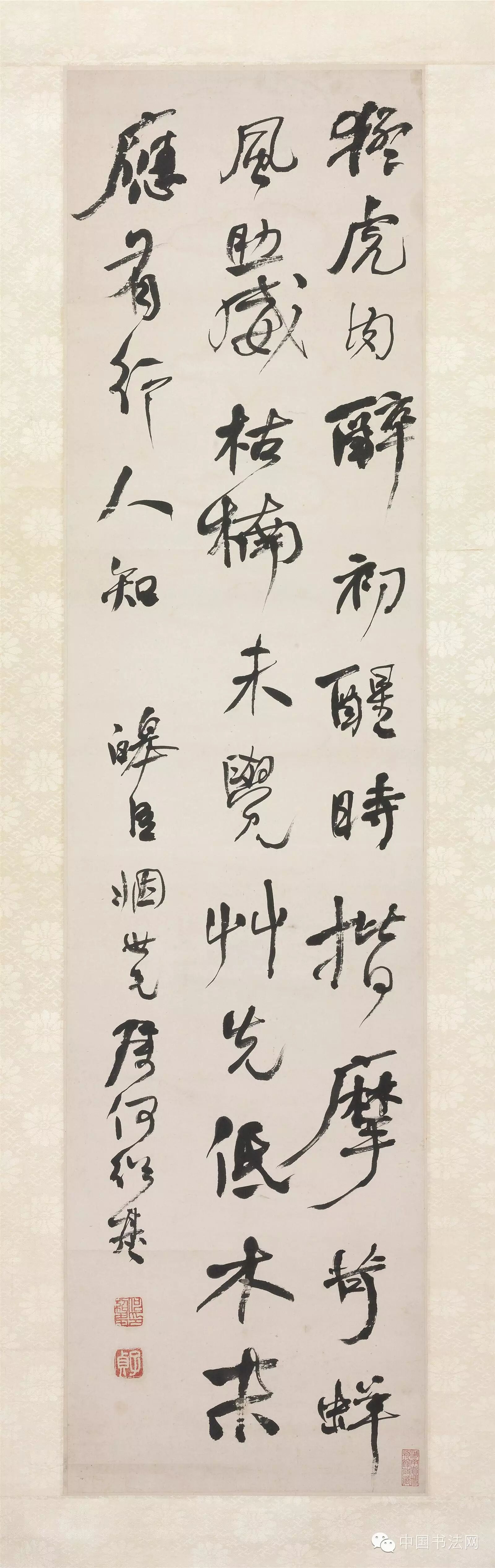 何绍基行书黄庭坚《题伯时画揩痒虎》轴