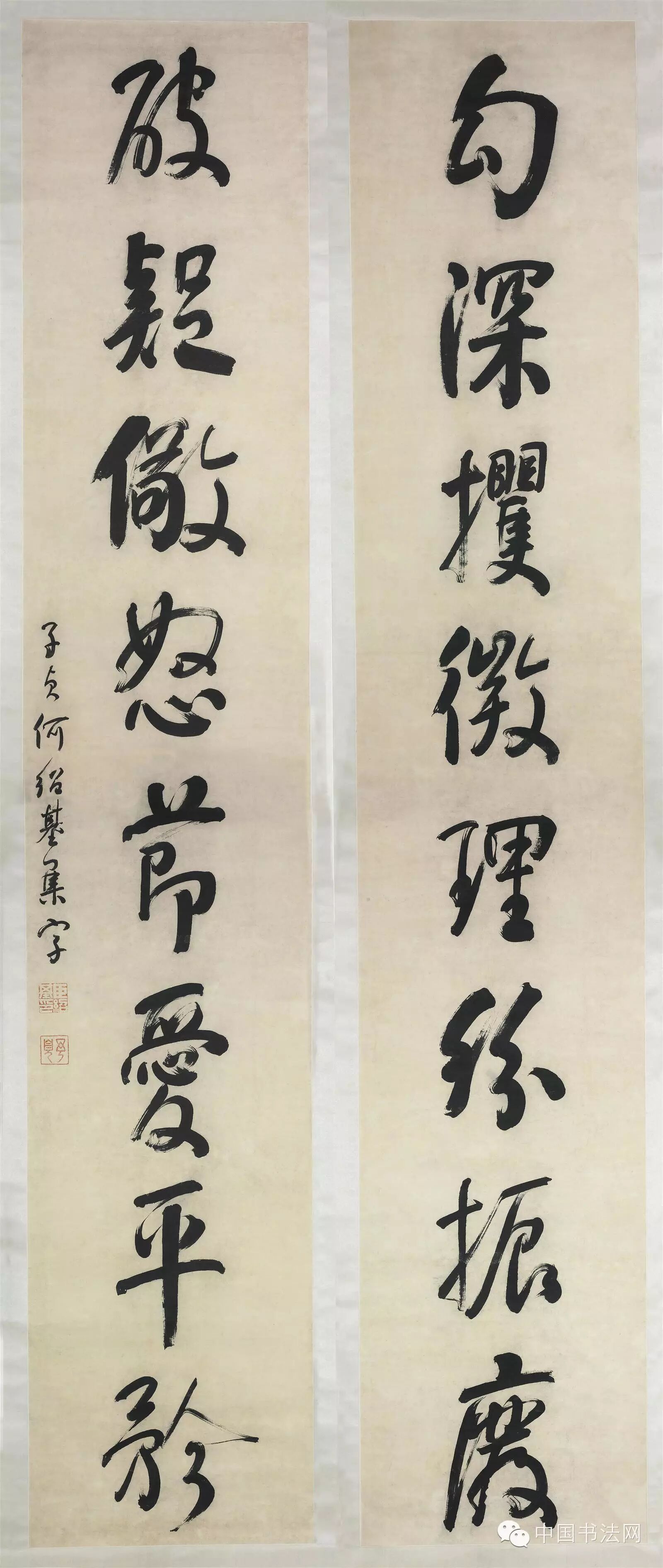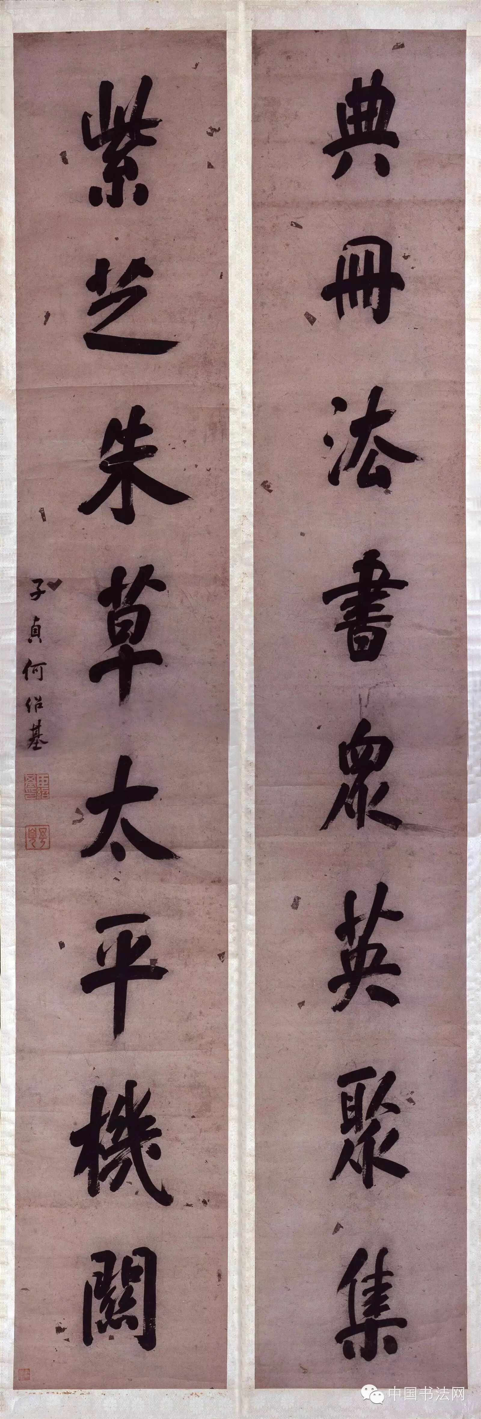 何绍基行楷“典册紫芝”八言联何绍基行楷“勾深破疑”八言联