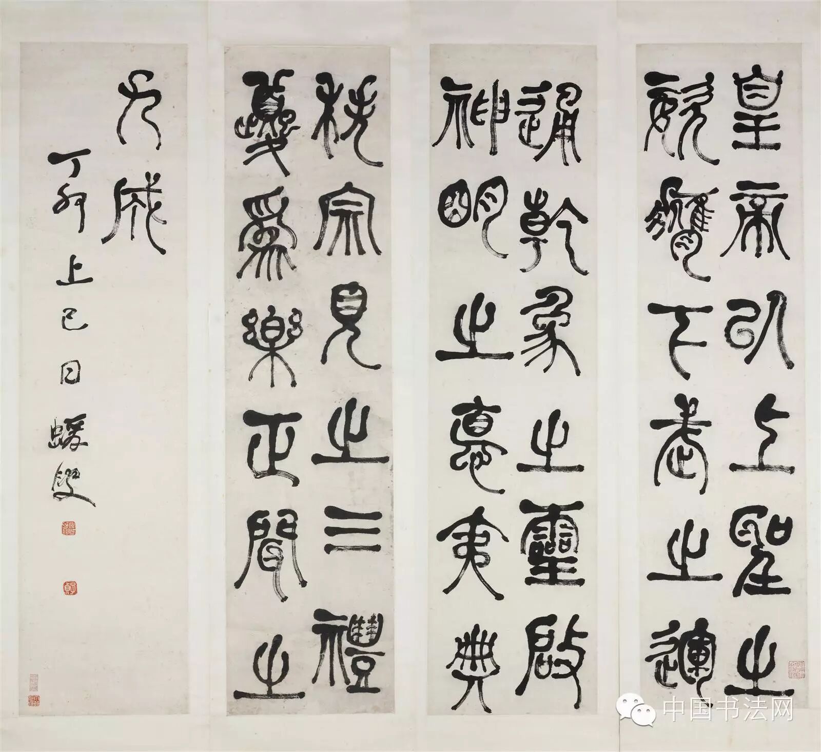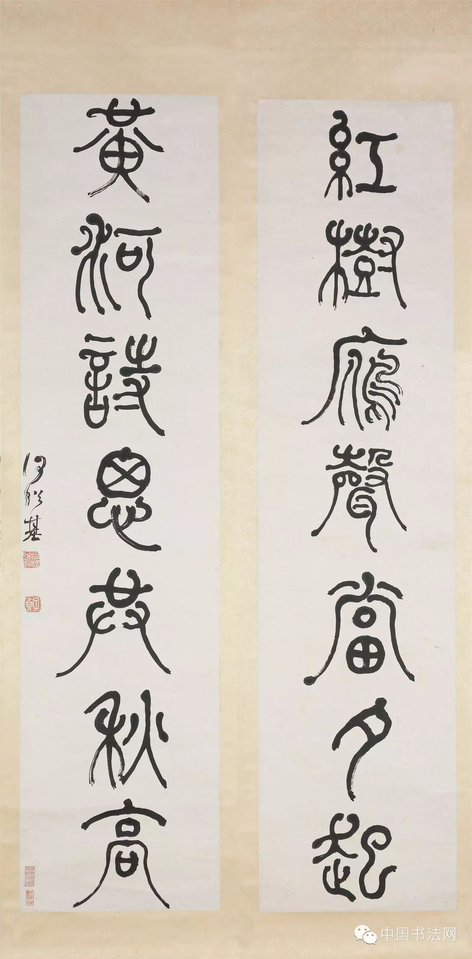 何绍基篆书出自周秦籀篆,《秦诏版》、《石鼓文》及三代鼎铭皆为他所好,广泛临习。其篆书极重气韵,不以分布为工,而以挺拔隽逸见长。他的篆书不类邓石如、赵之谦等清人之篆的光滑秀媚,于笔画牵引中有微妙的起伏变化,笔意苍老,与其纵放的行书神韵一致。这一反流俗的笔法或许正是何绍基的创新之处,相比同时代的书家,其艺术观点可谓超前。