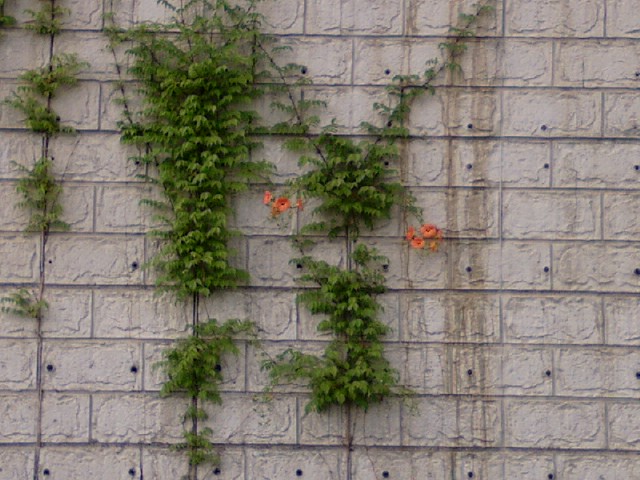 한강을 따라서 자전거를 타고 행주대교 가까이 가다보면 88도로를 만들면서 몇길이 되는 옹벽을 쳤는데, 사람이 아니라 자연이(능소화,담쟁이) 설치해놓은 미술품이 있었습니다.